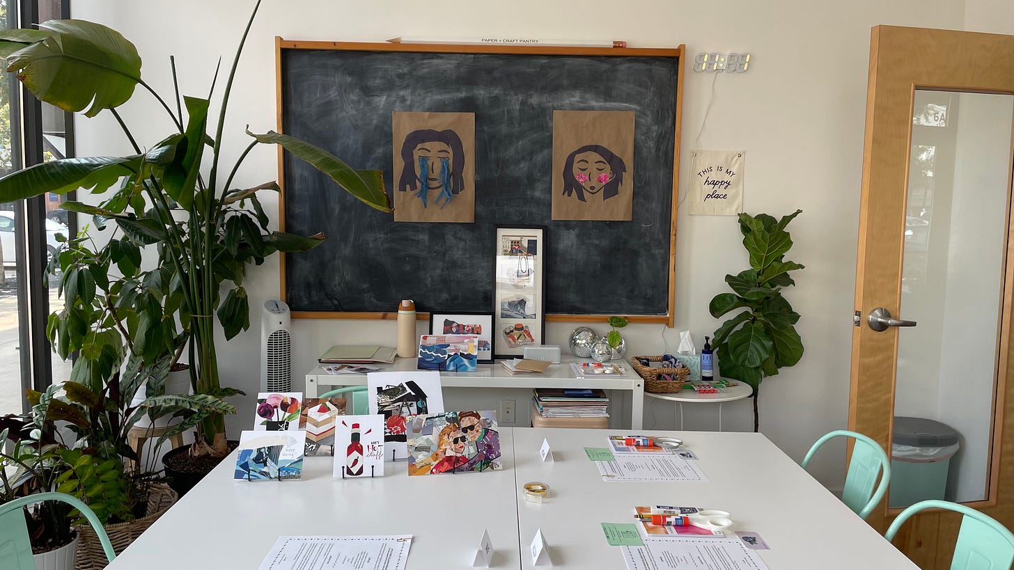 I taught my Art of Paper Collaging workshop yesterday at Paper + Craft Pantry. Participants made one abstract work and one object work, and I wasn’t prescriptive about it at all. I was a little nervous that I was giving too much freedom and that people would crave more guidance, but it turned out so well. There were swells of conversations and serendipitous, “I’m also from Michigan!” and “I also just dropped my daughter off at college last month!” conversations to absolute silence while everyone concentrated on cutting and sourcing paper.